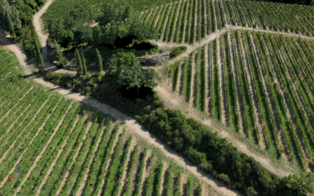 Infine, i sensori LiDAR emettono impulsi laser e misurano il tempo impiegato dall’impulso stesso per essere captato dal ricevitore. Il tempo impiegato viene tradotto in distanza e si genera un punto. Ripetendo questo processo infinite volte, lungo un filare ad esempio, è possibile costruire la nuvola di punti tridimensionale della chioma della pianta. Grazie al modello 3D è possibile calcolare parametri biometrici della pianta (come volume, altezza e densità della chioma) e creare il “digital twin”, ovvero il gemello digitale (Figura 5 e Figura 6).