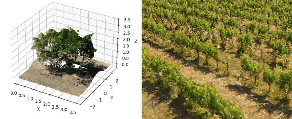 Fig.6: Gemello digitale di una pianta di agrumi (sinistra) e di un filare di viti (destra).